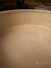 Buono stato solo leggermente ingiallita e leggera sbeccatura di pochi mm sul bordo. Diametro 33 cm h 12 cm.