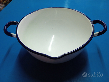 Catino vintage smaltato bianco e blu in perfette condizioni, diametro CM.23