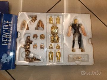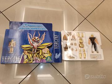 Scatola di un'action figure vintage de I Cavalieri dello Zodiaco (Saint Seiya), specificamente il Cavaliere d'Oro della Vergine, distribuita in Italia da Giochi Preziosi.