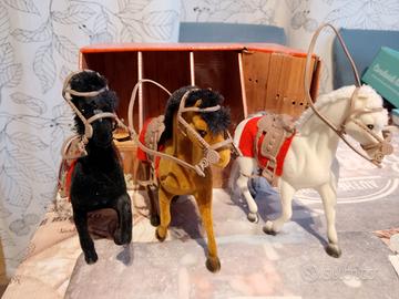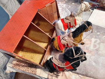 N. 3 cavalli modellino giocattolo Vintage cm 20 x 15 con annessa Stalla come da foto. Ritiro in loco