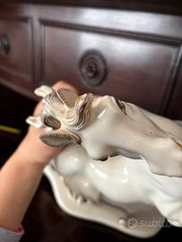 Cavallo di ceramica ho messo i particolari delle imperfezioni da produzione, segnalo invece sulla testa sul ciuffo una leggera abrasione forse sfregamento sul mobile in quanto di grandi dimensioni. Assicuro un imballo accurato co. Bolle d’aria e polistirolo spedisco solo con pacco grande per via del confezionamento
