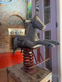 Vendo stupendo cavalluccio anni 40 in alluminio completo di base per fissaggio . Pezzo unico di design introvabile