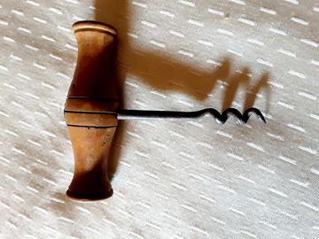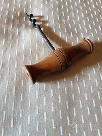 Antico cavatappi con impugnatura di legno di bosso,originale fine'800, fatto a mano,condizioni perfette, pezzo unico.