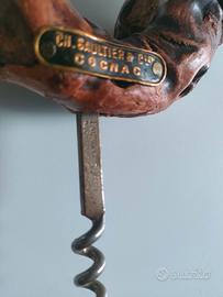 Bellissimo cavatappi vintage anni '70 in radica nodosa e ottone artigianale fatto a mano. Aggiunta perfetta per qualsiasi arredamento di casa, ufficio o bar.