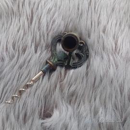 Cavatappi vintage a forma di chiave, che nasconde all' interno un apribottiglie, colore verde dorato, misure lunghezza 14 cm peso 130 gr.