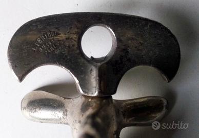 Cavatappi DA COLLEZIONE marcato PERILLA - PARIS Risale intorno agli anni 20/40. Lunghezza max: 16 cm. Materiale: metallo cromato con segni di usura legati all'età (come da foto), vermiglione ottimo Questo è un bel cavatappi funzionante, ma lo ritengo ideale per i collezionisti. PER QUALSIASI INFORMAZIONE CONTATTATEMI