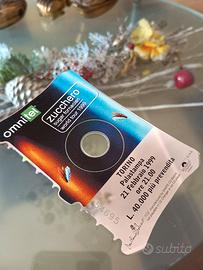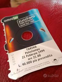 CD ticket tour mondiale Zucchero anno 1999 come detto è un ticket CD dalla forma irregolare dentro ci sono 4 tracce la prima traccia è un monologo di Zucchero la seconda traccia pubblicità Omnitel la terza e quarta traccia sono due brani dell' ultimo album portato in tour quell' anno. non va utilizzato in caricatori CD o nei lettori per auto per via della forma non standard questo CD ticket aveva una custodia in cartoncino che non ho più.