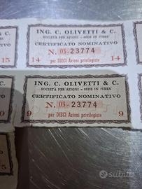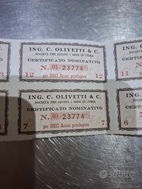 LOTTO DI CEDOLE DI DIVIDENDO ORIGINALI DELLA OLIVETTI . CERTIFICATO NOMINATIVO N.03-23774 RELATIVO AD AZIONI PRIVILEGIATO (10 AZIONI) CEDOLE NUMERATE