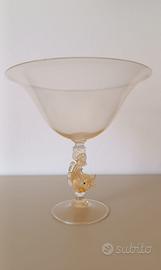 Coppa calice da collezione in vetro soffiato di Murano oro 24 con delfino sul gambo h. 25 diam. 26 Prezzo d’occasione Ottima idea regalo