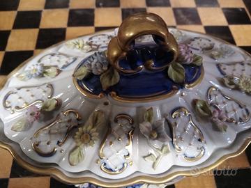 Elegante centrotavola in ceramica di Capodimonte, finemente decorato.