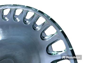 Centrotavola in vetro di Murano Design anni '60 Bel centrotavola in vetro di Murano di design con particolare lavorazione a fori lungo i bordi. In ottimo stato. Misure diametro 41 cm. Altezza 11 cm.