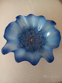 Bellissimo centrotavola in vetro pregiato Walther Glas, made in Germany anni 70-80. Colore blu cobalto con decoro floreale inciso. Presenta una forma particolare, a fiore, con i bordi ondulati. Perfetto come elemento decorativo o centrotavola. Dimensioni nelle foto, diametro massimo cm.32,nuovo con etichetta di origine, non presenta difetti. Spedizione veloce e massima cura nell'imballaggio.