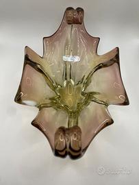 Centrotavola “Splash” di Murano in vetro trasparente fumé. 21.5 x 14 x 10 cm