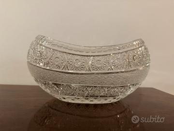 Splendido centrotavola in cristallo di una rara forma ovale a barca. In condizioni perfette. Misure: L 26 cm P 15 cm H 11/13 cm