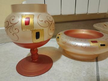Elegante set di centrotavola in vetro colorato decorazioni con motivi a spirale e inserti colorati
