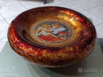 Elegante centrotavola svuotatasche in vetro di Murano, con decorazione raffigurante putti. Un pezzo unico per arredare la tua casa.