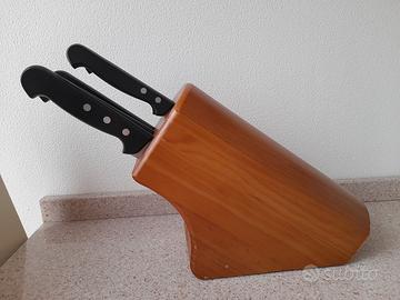 Vendo nuovo ceppo con set di 6 coltelli Montana con lame in acciaio inox. Senza confezione. Comprensivo di: