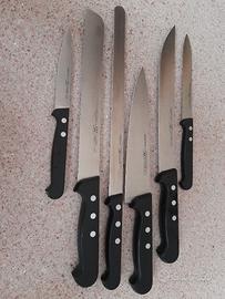 -Coltello arrosto. Lama lunga e rigida, appuntita verso l'alto, con filo di taglio liscio. Indispensabile per affettare carni cotte.