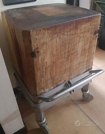 vendo Ceppo da macellaio struttura in metallo con ruote facile da spostare regalo coltelli coem in foto misure ceppo 50x42x50 H altezza da terra 80 cm