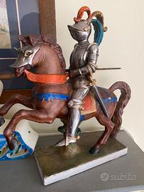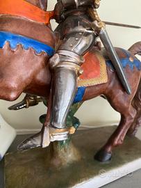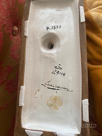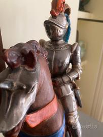 Splendida ceramica artistica Zaccagnini; altezza cm 36 larhezza cm 34; con marchio incusso alla base . Lancia in legno .Molto rara.