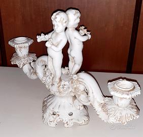 Coppia di antichi candelabri in ceramica Bassano.