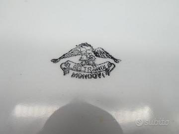 Splendida insalatiera / centrotavola in ceramica smaltata, realizzata dalla manifattura Beltrandi di Mondovì, celebre per le sue produzioni artigianali piemontesi.
