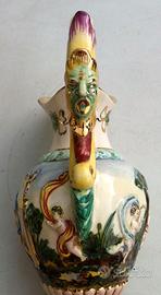 Anfora con sottopiatto di ceramica Capodimonte dipinta e dorata a mano.