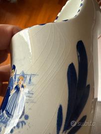 Decorazione conbambini in costume tradizionale olandesenei classici toni blu su fondo bianco.Dotata diforo posterioreper l'appensione. Inottime condizioni generali. Presenteleggera craquelure dello smalto, tipica delle ceramiche Delft vintage e coerente con l’età dell’oggetto. Nessuna crepa strutturale, rottura o scheggiatura. Ritiro a mano: Monza - Milano e Prov. (fermata metro/monorotaia) - Bergamo