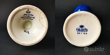 _coppia di oggetti in ceramica blue di Delft (Olanda) XX secolo, in buone condizioni ma il vaso portafiori ha la base riparata come ben visibile nelle foto