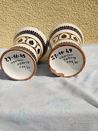 Coppia vasi ceramica Deruta anni 30 (dalle foto potete vedere che uno dei vasi riporta delle scheggiatura sul fondello). La data scritta a pennarello indica il momento in cui è stato fatto dono)