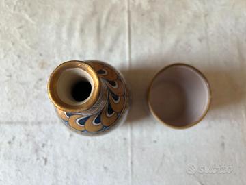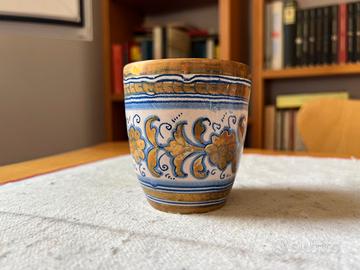 Vaso decorativo vintage con bicchiere in ceramica di Deruta (anni '70)