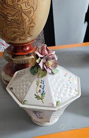 ceramica decorativa con inserti di fiori ( con qualche difetto ) dipinto a mano . arte Bassanese