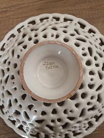 Bella alzatina in ceramica traforata. Maestro Leandro Lega di Faenza. Anni 70/80. Diametro cm 26 h. 7