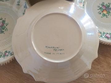 Vendo centrotavola ( 31 X 24 cm ) e tre piatti della ceramica Molaroni di Pesaro in ottime condizioni e senza sbeccature.