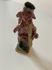 Statuetta in ceramica siciliana, rappresentante un venditore ambulante di trecce di aglio, alta circa 18 cm, come si nota nell’ultima foto manca una mano