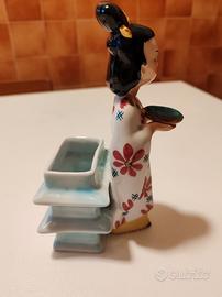 Geisha h. 17 cm. Anni 50 in ceramica attribuibile alla vecchia produzione Lombarda di Laveno-Mombello.