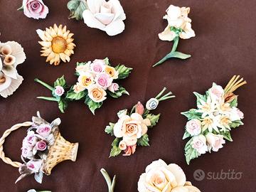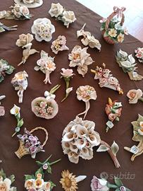 ceramiche scuola di Capodimonte a tema floreale 40 pezzi circa perfette