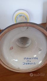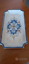 set composto da candelabro h.28 cm, portamatite h.11 e vassoietto 24x12 delle ceramiche Deruta. Solo il portamatite ha una piccolissima lesione sul bordo interno, come da foto, per il resto il set è perfetto. Chiedo esattamente 25,10 e 15 euro, oppure in blocco a 40. Contattatemi pure senza impegno per pianificare scelta e peso pacco.