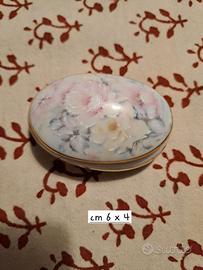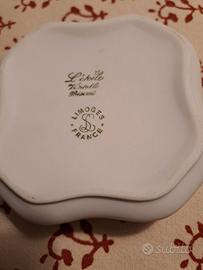 Piattino e due scatoline in ceramica Limoges (France). Nuove. Misure in foto. Prezzo per 3 oggetti 12 euro.
