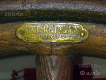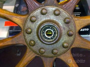 Cerchioni ruota a raggi in legno primi '900 in condizioni ottime, sono due ruote di diametro diverso, il prezzo è riferito a una ruota una ha un diametro da cm 59 con riportata una targhetta Ruotificio Italiano Torino e una di diametro cm 61 con una targhetta con sigla " H " Considerando il peso ritiro e/o visione a Ravenna Invio su richiesta foto con più dettagli