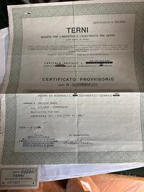 Due certificati azionari provvisori Terni 1981. Vendibili anche singolarmente Possibile ritiro direttamente a Domodossola (VCO) o San Donato Milanese