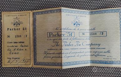 certificato di garanzia Parker 51 del 1967, in ottime condizioni la richiesta non è negoziabile
