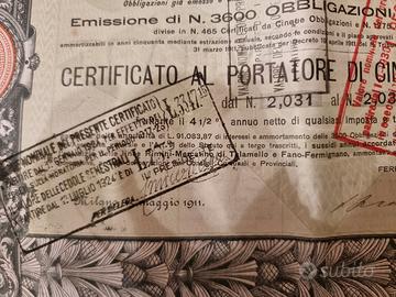 Certificato n. 1.427 al portatore di 5 obbligazioni da 500 lire (totale: 2.500 lire)