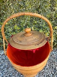 Cesta portacucito rattan anni 70