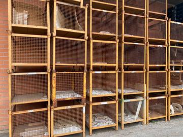 Ceste in metallo per magazzino, dimensioni cm. L. 100X82 P. (misure interne) altezza 86 cm. costo € 10,00 cad. Ritiro a carico dell'acquirente.