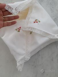 I ricami sono delicati, adatti a qualsiasi stile e cucina. Provenzale, moderna, per una casa in campagna, un casale, un B%B per presentare delle fette biscottate dei biscotti.