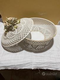 Cestino con coperchio infiorato.