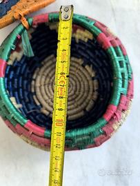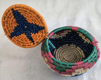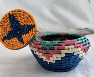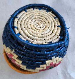 CESTO ANTICO CON COPERCHIO CM 12 CESTO SARDO IN GIUNCO FATTO A MANO DECORATO