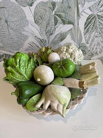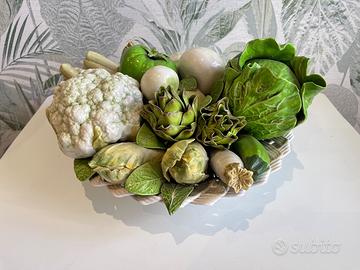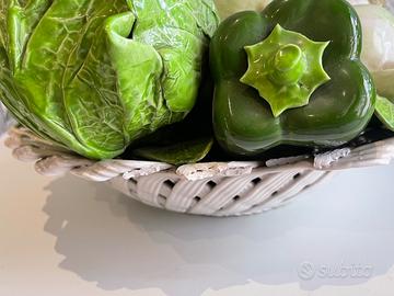 Bellissimo cesto di verdure in ceramica maiolica, un pezzo vintage di manifattura artistica italiana.