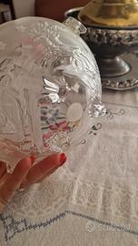 Cestino di vetro made in Germania. Con disegno su vetro di babbo natale con renne. Marca ORIGINAL